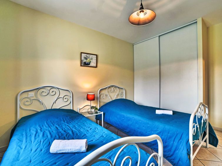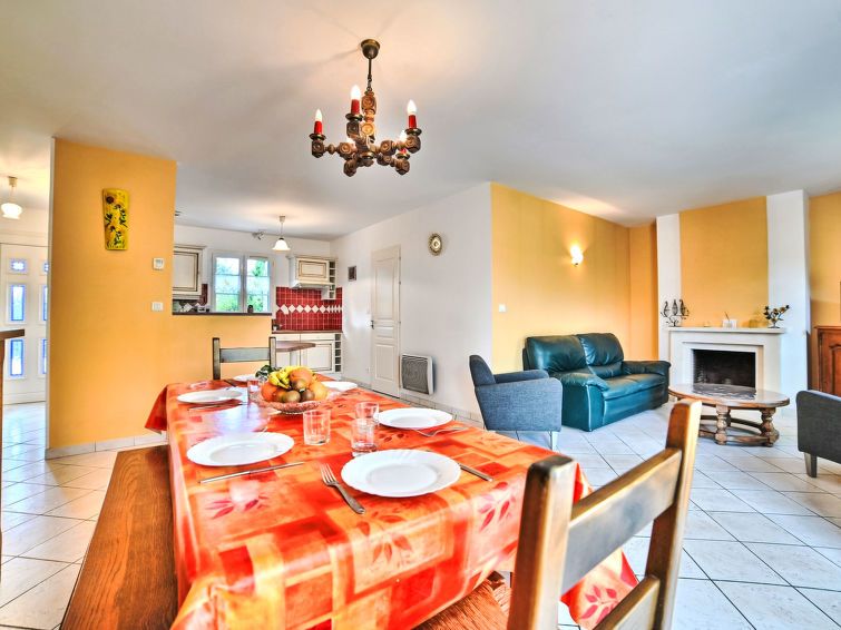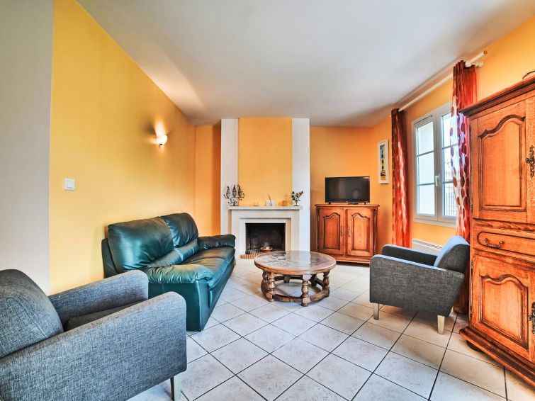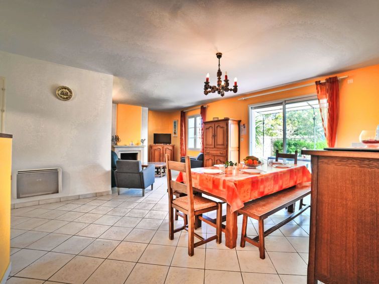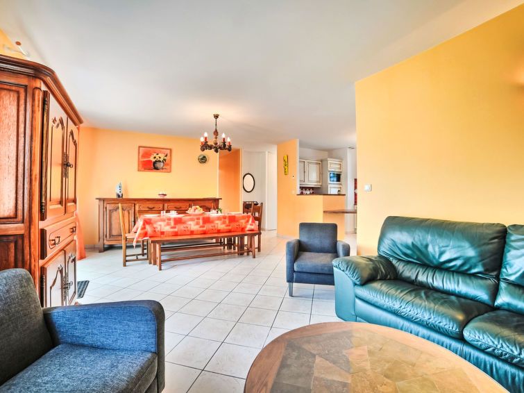 4-room house 86 m2. Beautiful furnishings: living/dining room with panoramic window with TV and flat screen. Exit to the garden, to the terrace. 2 rooms, each room with 1 french bed (1 x 160 cm, length 200 cm). 1 room with 2 beds (90 cm, length 190 cm). Open kitchen (oven, dishwasher, 3 induction hot plates, toaster, kettle, microwave, freezer, electric coffee machine).