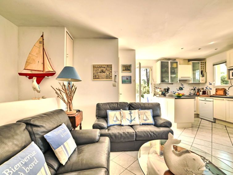 4-room terraced house 82 m2 on 2 levels. Comfortable and beautiful furnishings: living/dining room with satellite TV and air conditioning. Exit to the balcony. Open kitchen (oven, dishwasher, 4 induction hot plates, toaster, kettle, microwave, electric coffee machine). Exit to the balcony.