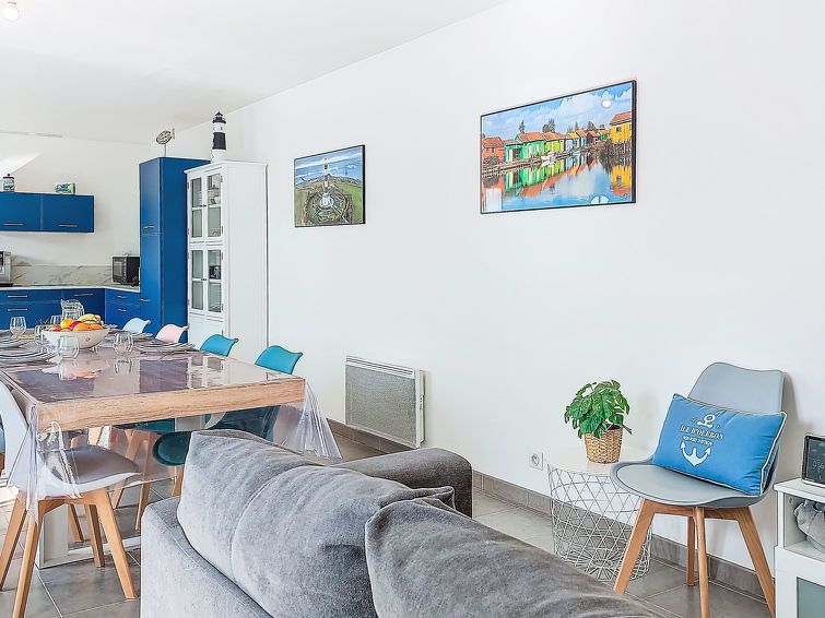 "Les Loges", 4-room terraced house 90 m2. Beautiful and modern furnishings: large living/dining room with TV (flat screen). Exit to the garden. 1 room with 1 french bed (1 x 140 cm, length 190 cm). 1 room with 1 french bed (1 x 160 cm, length 200 cm). 1 room with 2 x 3 bunk beds (90 cm, length 190 cm).