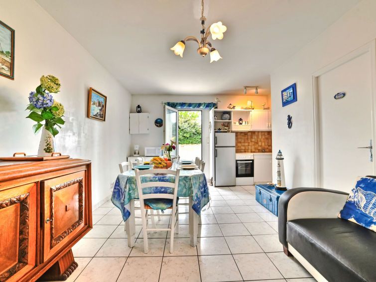 3-room terraced house 55 m2. Simple furnishings: living/dining room with TV (flat screen). Exit to the terrace. 1 room with 1 french bed (140 cm, length 190 cm). 1 room with 1 french bed (140 cm, length 190 cm). Kitchenette (oven, Gas stove, 4 gas rings, toaster, kettle, microwave, electric coffee machine).