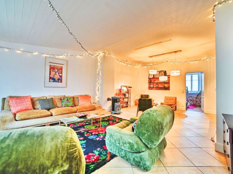 4-room terraced house. Comfortable and beautiful furnishings: living/dining room. Exit to the garden. 1 room with 1 french bed (160 cm, length 200 cm). 1 room with 1 french bed (140 cm, length 190 cm). 1 children's room with 1 x 1 bunk beds (80 cm, length 190 cm). Open kitchen (4 hot plates, oven, toaster, kettle, microwave, electric coffee machine, cooking island).