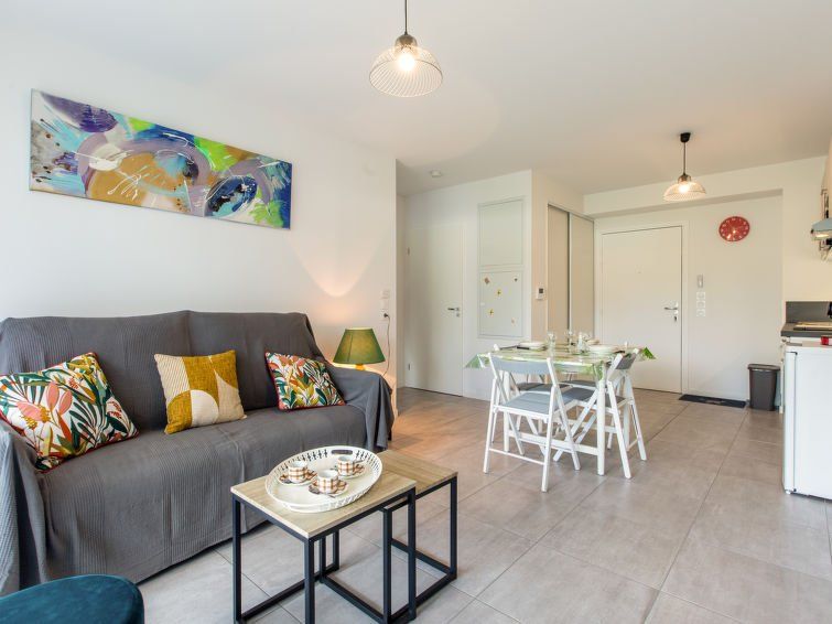 2-room apartment 42 m2, on the ground floor, north facing position. Comfortable and beautiful furnishings: living/dining room with 1 sofabed (140 cm, length 190 cm), TV (flat screen). Exit to the terrace. 1 room with 2 beds (90 cm, length 200 cm). Open kitchen (oven, dishwasher, 2 ceramic glass hob hotplates, toaster, kettle, microwave, electric coffee machine).