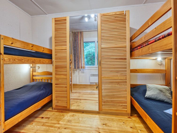 3-room house 66 m2. Beautiful furnishings: living/dining room. Exit to the terrace. 1 room with 1 double bed (140 cm, length 200 cm). 1 room with 2 x 2 bunk beds (90 cm, length 190 cm). Large kitchen (oven, dishwasher, 4 ceramic glass hob hotplates, toaster, kettle, microwave, electric coffee machine, Capsules for coffee machine (Senseo) extra).
