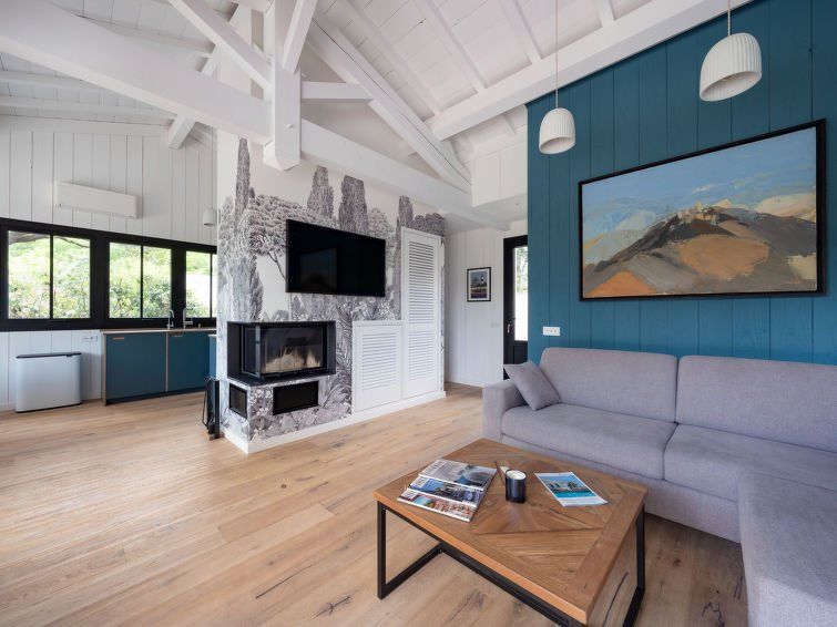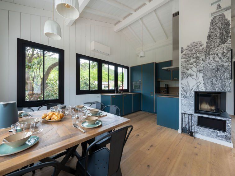 3-room house 70 m2. Spacious and bright, fully renovated, very modern furnishings: living/dining room with cable TV (flat screen), hi-fi system and wood-burning stove. Exit to the garden, to the terrace. 1 room with 1 double bed (160 cm, length 200 cm), cable TV (flat screen). 1 room with 1 double bed (2 x 80 cm, length 190 cm).