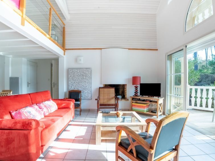 3-room villa 100 m2 on 2 levels. Modern furnishings: large living/dining room with dining table and satellite TV (flat screen). Exit to the terrace, to the swimming pool. 1 room with 1 french bed (160 cm, length 190 cm). 1 room with 2 beds (90 cm, length 190 cm). Exit to the terrace.