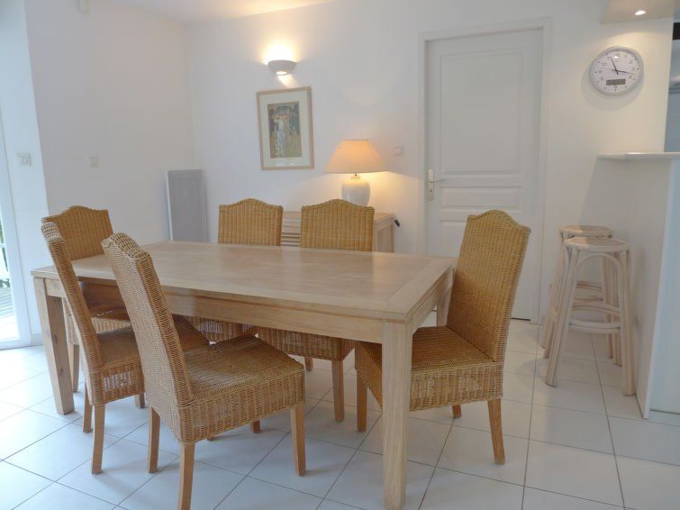 5-room villa 112 m2 on 2 levels, south facing position. Comfortable furnishings: living/dining room 33 m2 with TV. Exit to the swimming pool. 1 room with 1 french bed (160 cm, length 200 cm), TV. Exit to the swimming pool. 1 room with 1 double bed (2 x 90 cm), hand-basin and shower.