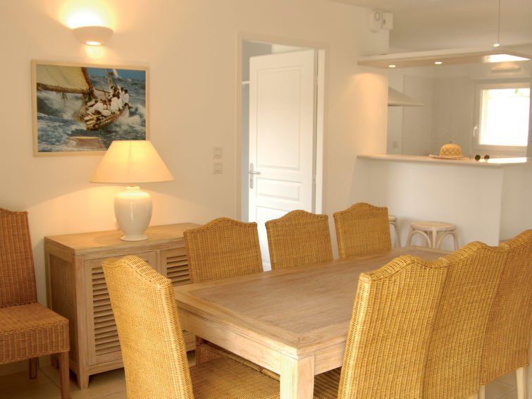 "Eden Club V6IS", 4-room house 92 m2 on 2 levels. Bright, comfortable and tasteful furnishings: living/dining room with dining table and satellite TV. Exit to the terrace. 1 room with 1 french bed (160 cm, length 200 cm), bathroom and double hand-basin. Exit to the terrace. Open kitchen (oven, dishwasher, 4 ceramic glass hob hotplates, toaster, kettle, microwave, freezer, electric coffee machine).