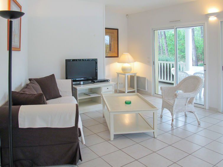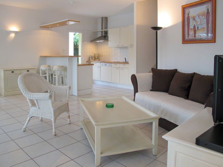"Eden Parc Golf de l'Ardilouse V6I", 4-room villa 95 m2. Beautiful furnishings: living/dining room with panoramic window with dining table and satellite TV (flat screen). Exit to the terrace. 1 room with 1 french bed (160 cm, length 200 cm), bathroom and double hand-basin. 2 rooms, each room with 2 beds (90 cm, length 190 cm).