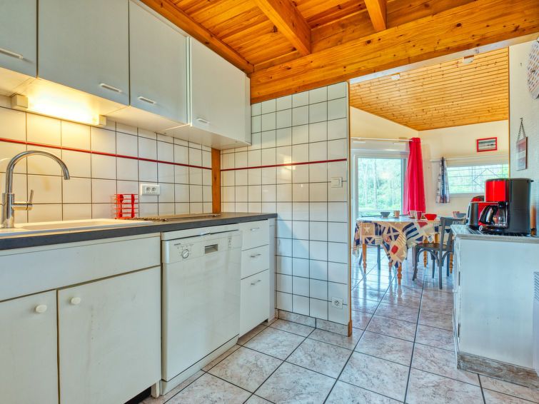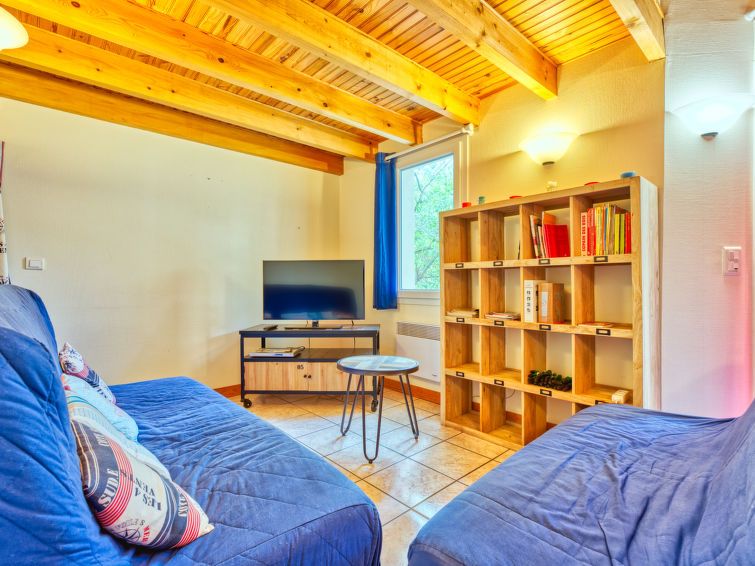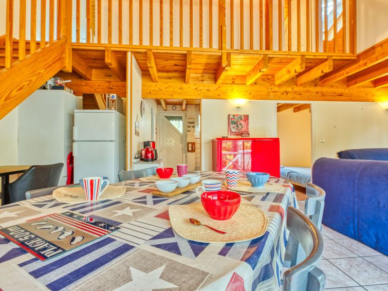"Golf Loisirs 22", 4-room terraced house 75 m2 on 2 levels. Beautiful furnishings: living/dining room with TV and hi-fi system. Exit to the terrace. 1 room with 1 double bed (160 cm, length 190 cm). Kitchen (3 hot plates, oven, dishwasher, toaster, kettle, microwave, electric coffee machine).
