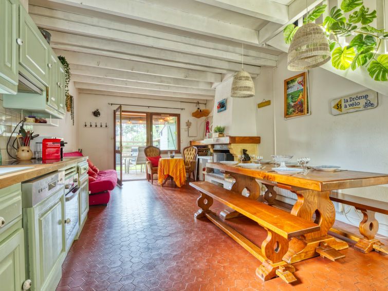 3-room terraced house 53 m2 on 2 levels. Comfortable furnishings: open living room with 1 sofabed (160 cm, length 190 cm), flat screen. Dining room with open-hearth fireplace. Open kitchen (oven, dishwasher, 3 induction hot plates, toaster, kettle, microwave, electric coffee machine, Capsules for coffee machine (Nespresso) extra).
