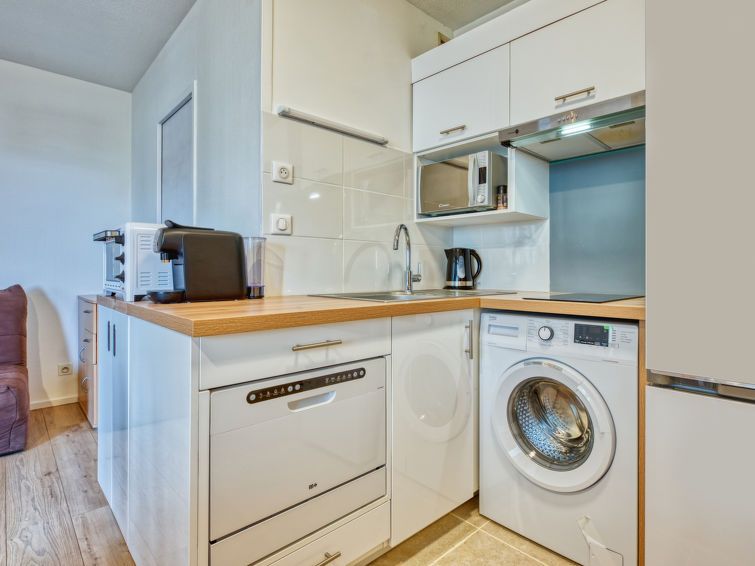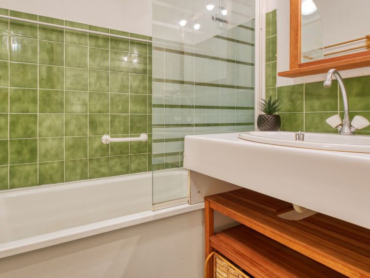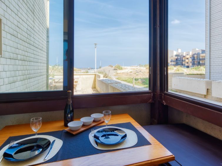 The living room is pleasant, as is the kitchen area. This rental is missing a window and a television. The veranda overlooks a tenant's garden, and we can't go outside because it's a bay window that's very difficult to open. We have to turn on the light all the time!!!! It's really unpleasant for vacations. The shower faucet and showerhead need replacing.