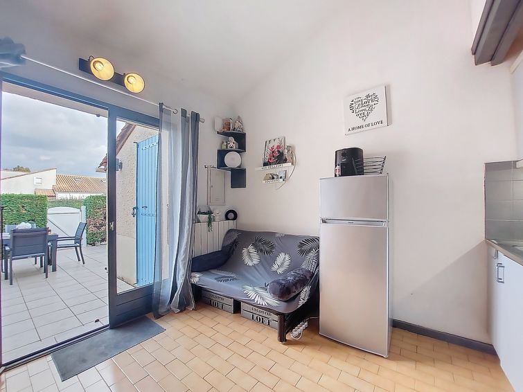 2-room terraced house 38 m2 on 2 levels. Alcove with 1 x 2 bunk beds (90 cm, length 190 cm). Living room with TV (flat screen). Exit to the terrace. Kitchenette (mini-oven, oven, dishwasher, 2 induction hot plates, toaster, kettle, microwave, electric coffee machine). Shower/WC. Electric heating.