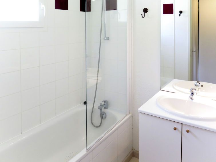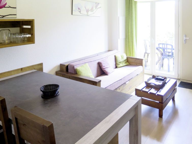 "Les Terrasses du Lac", 3-room apartment 40 m2 on 2 levels. Beautiful furnishings: living/sleeping room with 1 double sofabed, dining table and TV. Exit to the balcony, to the terrace. Open kitchen (dishwasher, 4 ceramic glass hob hotplates, electric coffee machine, combination microwave).