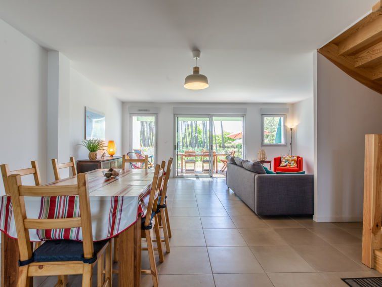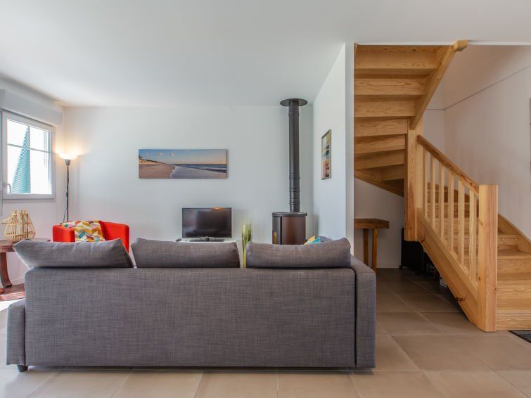 "Les Fougères", 4-room house 101 m2 on 2 levels. Beautiful and cosy furnishings: living/dining room with dining table and satellite TV (flat screen), wood-burning stove. Exit to the terrace. Open kitchen (oven, dishwasher, 4 induction hot plates, toaster, kettle, microwave, freezer, electric coffee machine).