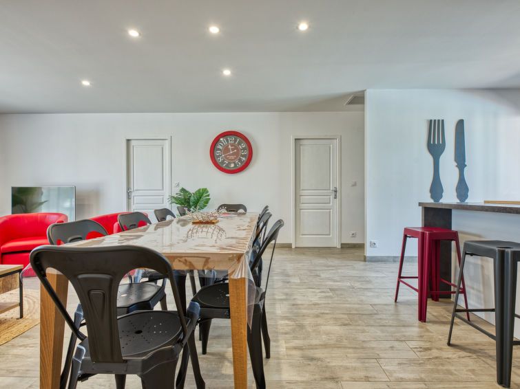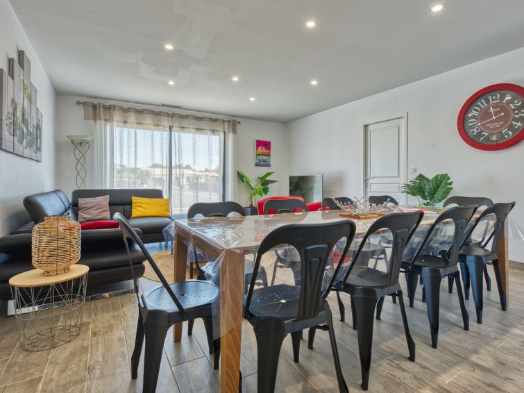 Large, well-furnished house, all on one level. All rooms are of equal standard with their own shower/toilet, which was very important to us. Coverable pool, lots of space and enough loungers around the pool. Enough space for cars. Kitchen well-equipped with dishwasher, coffee machine, waste separation and enough storage space. Washing machine was very helpful.