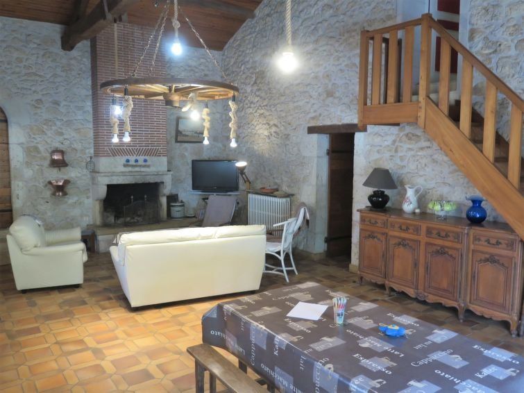 7-room house 300 m2 on 2 levels. Rustic and antique furnishings: large living/dining room with open-hearth fireplace and TV (flat screen), DVD. Exit to the garden. 1 room with 1 french bed (140 cm, length 190 cm), shower. 1 room with 1 french bed (160 cm, length 200 cm). Large kitchen (oven, dishwasher, 4 gas rings, toaster, kettle, microwave, freezer, electric coffee machine) with dining table, dining table.