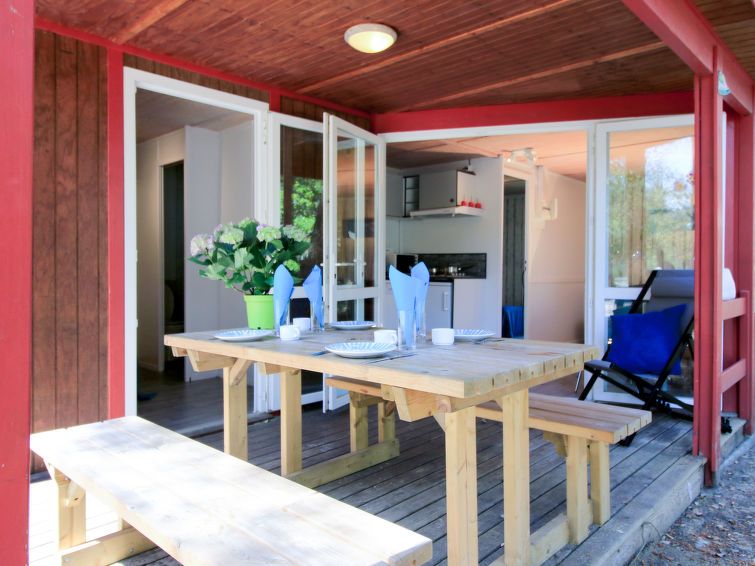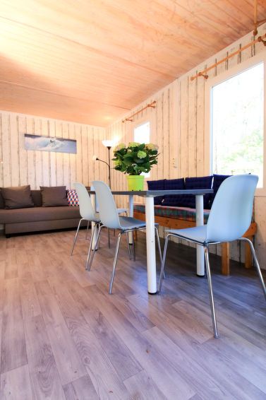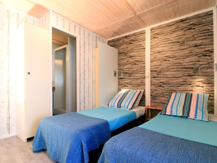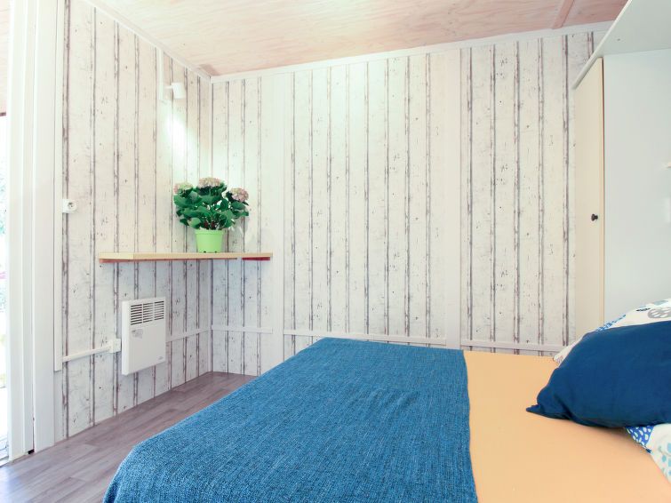 "Blue Océan Chalet Villa Premium", 3-room chalet 44 m2. Object suitable for 4 adults + 1 child. Practical furnishings: living/sleeping room with 1 double sofabed (70 cm, length 190 cm), dining table and TV. Exit to the terrace. 1 room with 1 french bed (160 cm, length 200 cm), shower/WC.