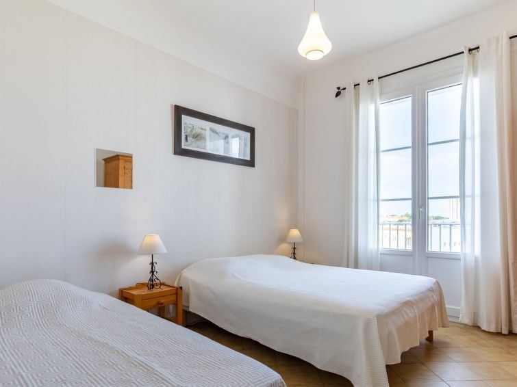 3-room apartment 53 m2 on 4th floor. Living/dining room with TV. 1 room with 1 bed (90 cm, length 190 cm), 1 french bed (1 x 160 cm, length 190 cm). 1 room with 1 french bed (1 x 140 cm, length 190 cm). Kitchenette (4 hot plates, oven, dishwasher, microwave). Shower, sep. WC. Electric heating.