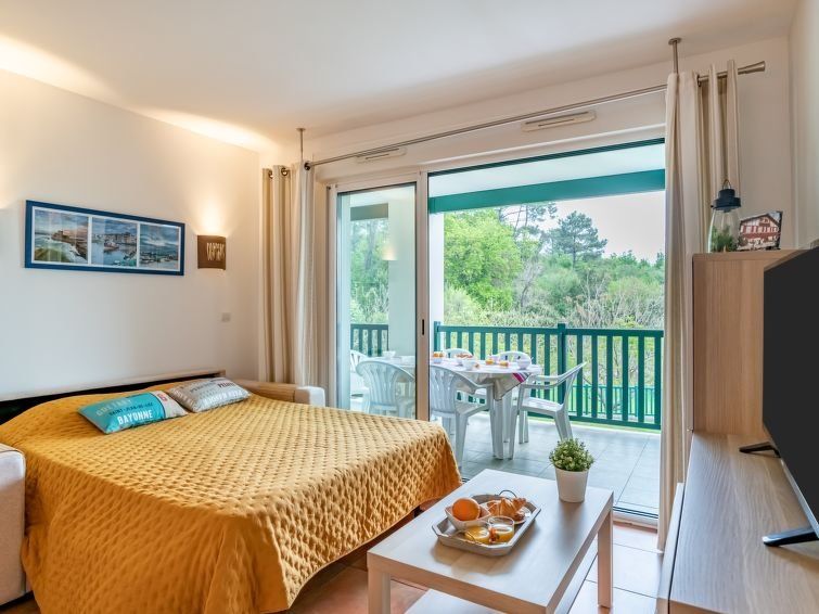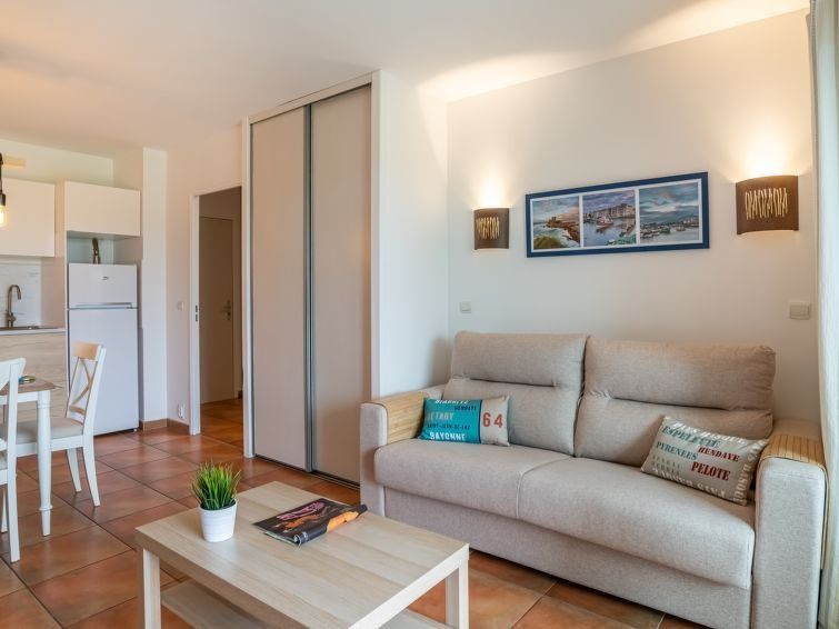 "Domaine Iratzia", 3-room apartment 45 m2 on 1st floor. Comfortable and beautiful furnishings: living/dining room with 1 double sofabed (140 cm, length 190 cm), TV (flat screen). Exit to the terrace. 1 room with 1 french bed (1 x 160 cm, length 200 cm). Exit to the terrace. 1 room with 1 x 2 bunk beds (90 cm, length 190 cm).