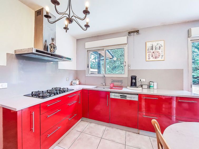 "Maison du Chêne Pointu", 5-room house 190 m2 on 2 levels. Comfortable and beautiful furnishings: living/dining room with Scandinavian wood stove and TV (flat screen). Exit to the terrace. 2 rooms, each room with 1 french bed (160 cm, length 200 cm). Kitchen (oven, dishwasher, 5 gas rings, toaster, kettle, microwave).