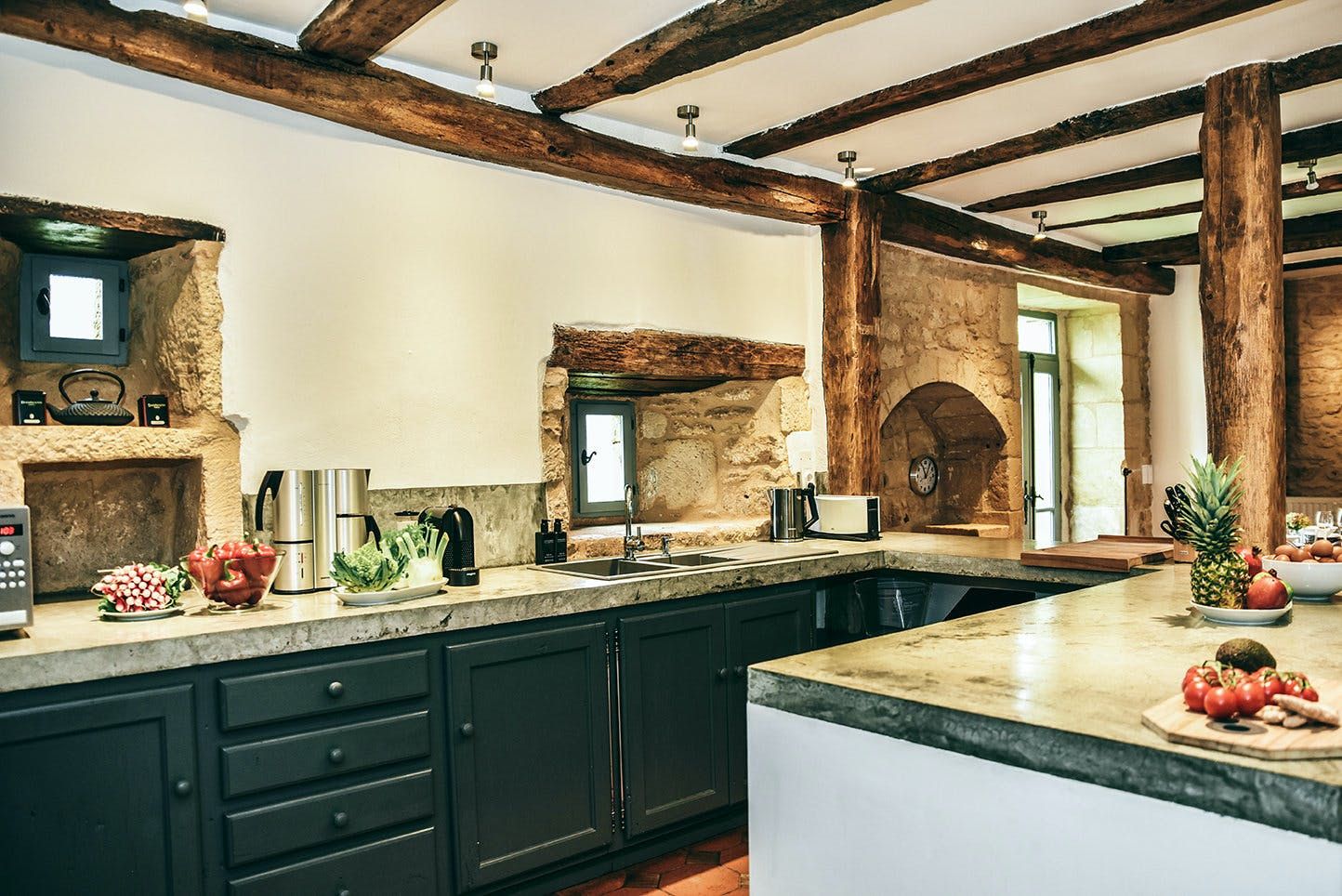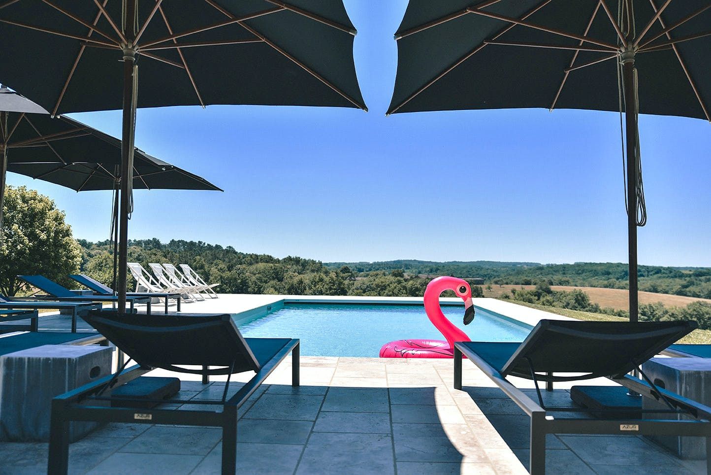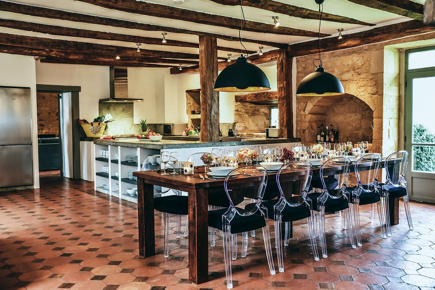 From the windows in the plush upstairs bedrooms, keep an eye out for deer, birds of prey and wild boars roaming the landscape. You'll likely want to spend most of your time in the peaceful outdoor space, which has a private heated pool, pétanque court and plentiful loungers where you can sit and sip cocktails with the sun overhead.