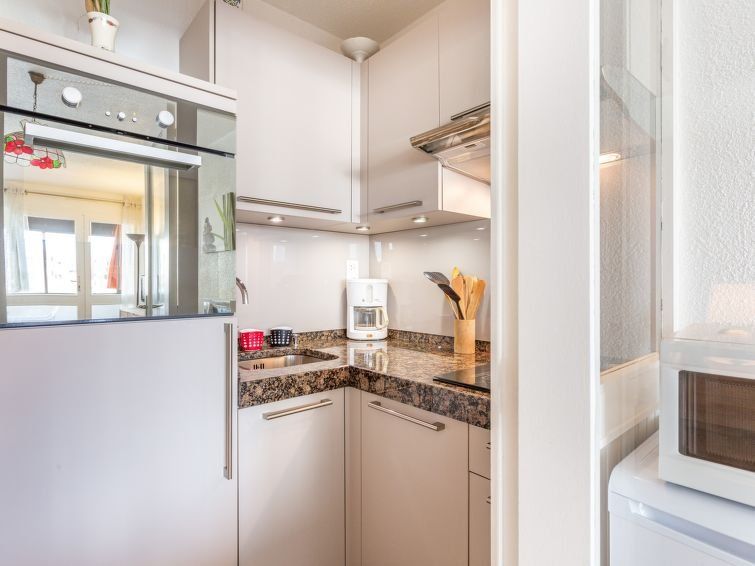 2-room apartment 45 m2 on 1st floor. Comfortable and beautiful furnishings: living/dining room 16 m2 with TV (flat screen). Exit to the loggia. 1 room 9 m2 with 1 french bed (140 cm, length 190 cm). Exit to the balcony. Entrance hall with 1 x 2 bunk beds (90 cm, length 190 cm). Kitchenette (oven, dishwasher, 2 induction hot plates, toaster, kettle, microwave, freezer, electric coffee machine).