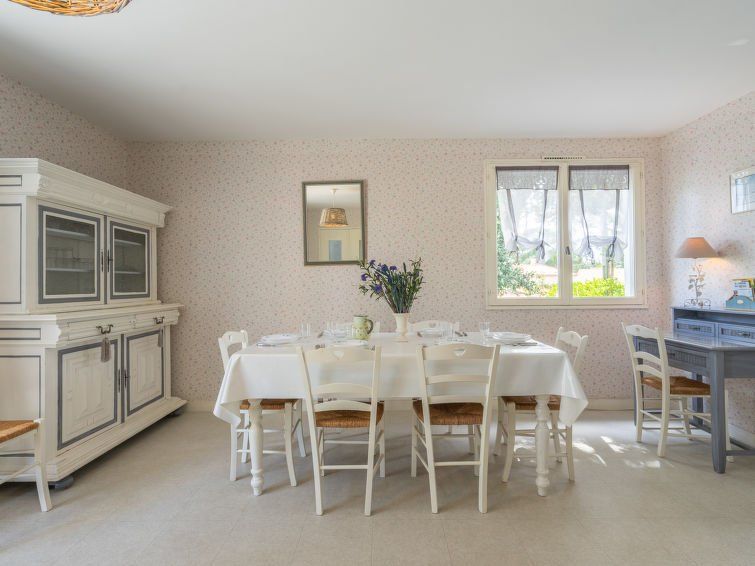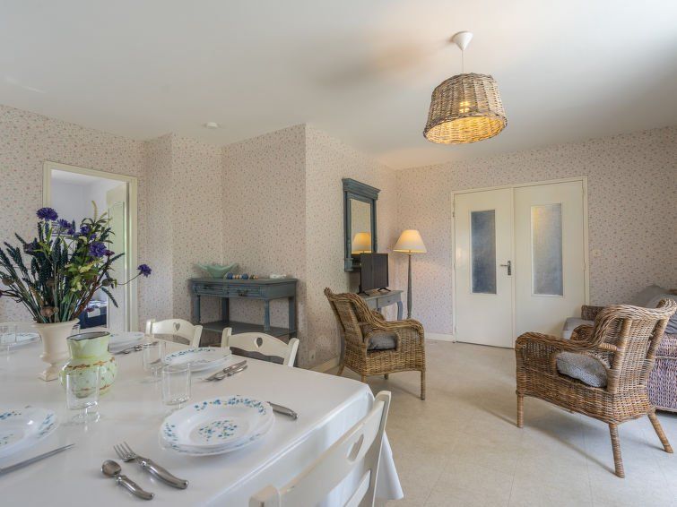 4-room apartment 100 m2 on 1st floor. Living/dining room with TV (flat screen). 2 rooms, each room with 1 french bed (1 x 140 cm, length 190 cm). 1 room with 2 beds (90 cm, length 190 cm). Kitchen (4 hot plates, oven, dishwasher, microwave, freezer). Bathroom, sep. WC. Electric heating.