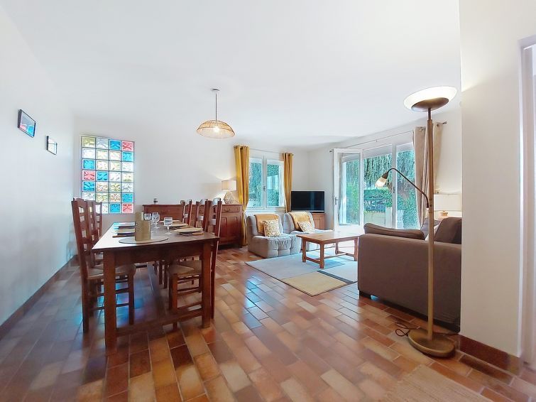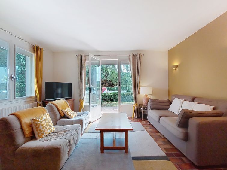 4-room house 85 m2. Living/dining room with TV (flat screen). Exit to the garden. 1 room with 1 bed (90 cm, length 190 cm), 1 french bed (140 cm, length 190 cm). 1 room with 1 french bed (140 cm, length 190 cm). Kitchen (oven, 4 gas rings, toaster, kettle, microwave, electric coffee machine).