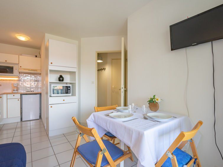 Clean apartment, calm and pleasant environment. Well located, 200 m from the beach. On the other hand, we were 2 adults and we did not use the room because 2 beds next to each other, no passage on the side or at the foot of the 2 beds. The installation is even dangerous. Well equipped in the kitchen. A nice pool, but lacks shade. No umbrella available. We weren't able to use the garage because it was too cramped, but it wasn't too complicated to park in the public car park in front of the residence.