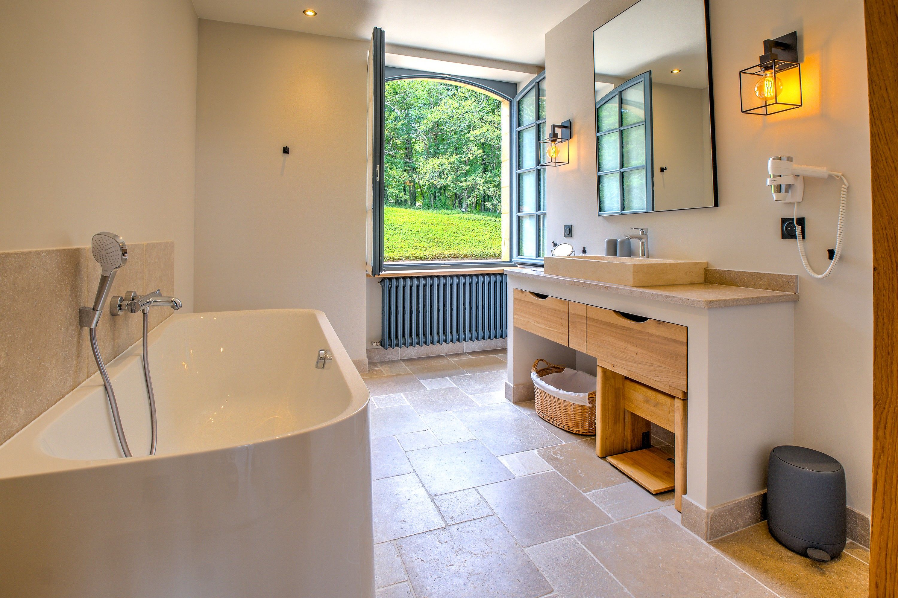 If you're after grandeur, this stately home in the French countryside makes its mark from the get-go. Set on eight hectares of wooded land, it's all about sweeping views over the Dordogne Valley. In the garden, you'll find fountains, a pétanque court and a heated saltwater pool with a pool house. Inside, there's plenty of living space, including a billiard room, a TV and games room, and a laptop workspace in every bedroom. There's even a separate one-bedroom guest house with a romantic Nordic bath outside. You’ll need a car, but with a setting like this, it's worth it. You're in the Golden Triangle of the Périgord Noir, and just a short drive from the medieval town of Sarlat.