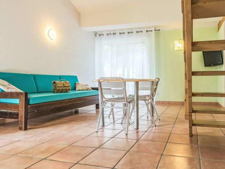 "Le Mediterranée", 3-room terraced house 56 m2 on 2 levels. Renovated in 2009, practical furnishings: living/sleeping room with 1 double sofabed, dining table, satellite TV, international TV channels and air conditioning. 1 room with 1 french bed (160 cm). 1 room with 2 beds (80 cm).