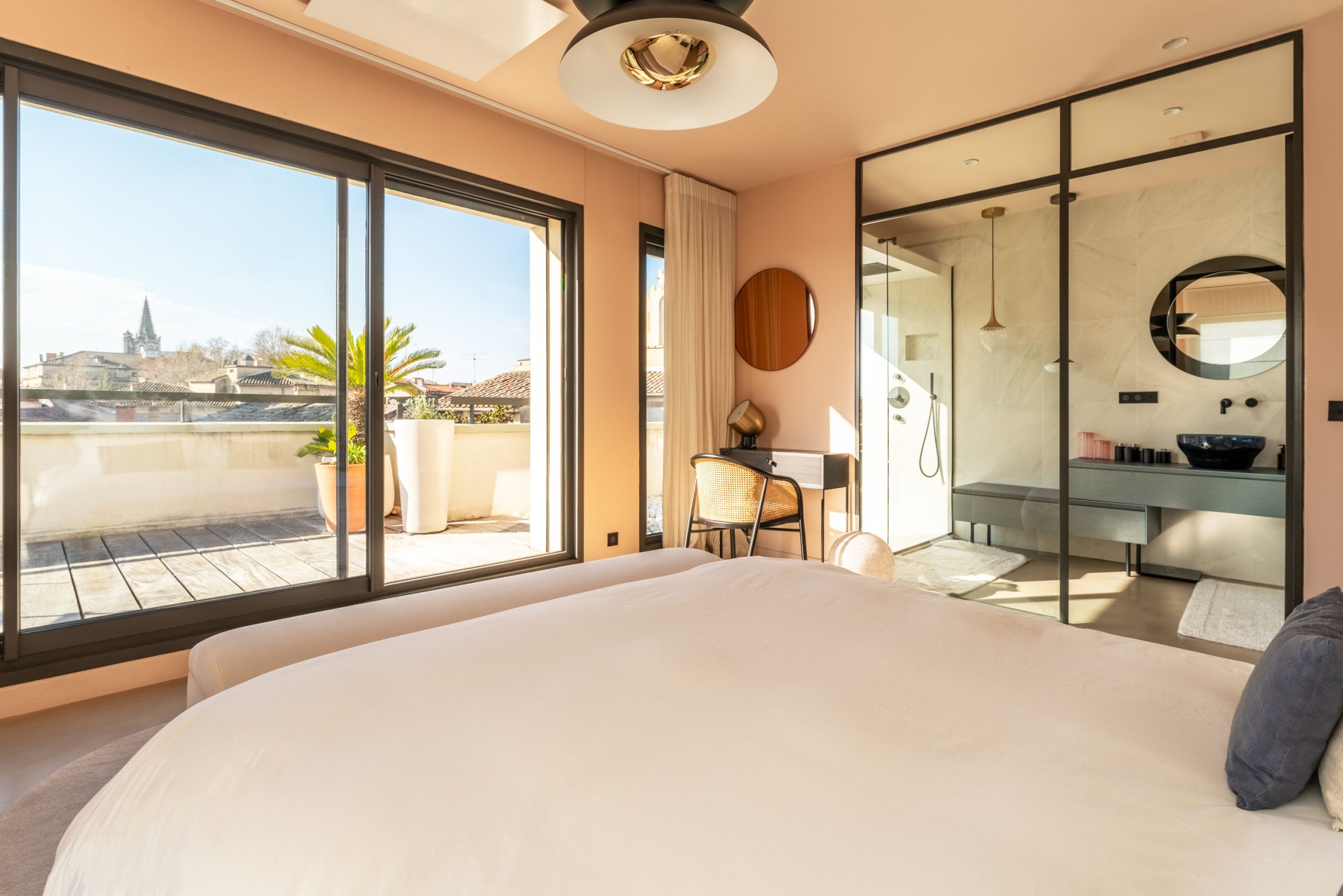 Offering panoramic vistas from inside the ramparts of Avignon, this is a storybook setting, no doubt. Wake to light-filled, contemporary interiors in one of the two en-suite suites here, before enjoying your morning coffee alongside views of the Papal Palace. When you're ready to seize the day, head out and discover the best of this city on foot – particularly as its central location makes it a solid shout for those travelling without a car. Split over two floors, with lots of space and home touches, this penthouse would make a great option for both families and friends when in town.