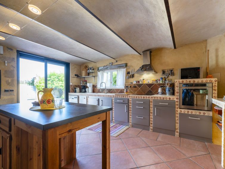 "Le Mas d'Adélaïs", 7-room farmhouse 300 m2 on 2 levels. Spacious, fully renovated, comfortable furnishings: living/dining room with Scandinavian wood stove and satellite TV (flat screen), hi-fi system, DVD and air conditioning. Exit to the terrace. 1 room with 1 french bed (1 x 160 cm, length 200 cm), shower/WC and fan.