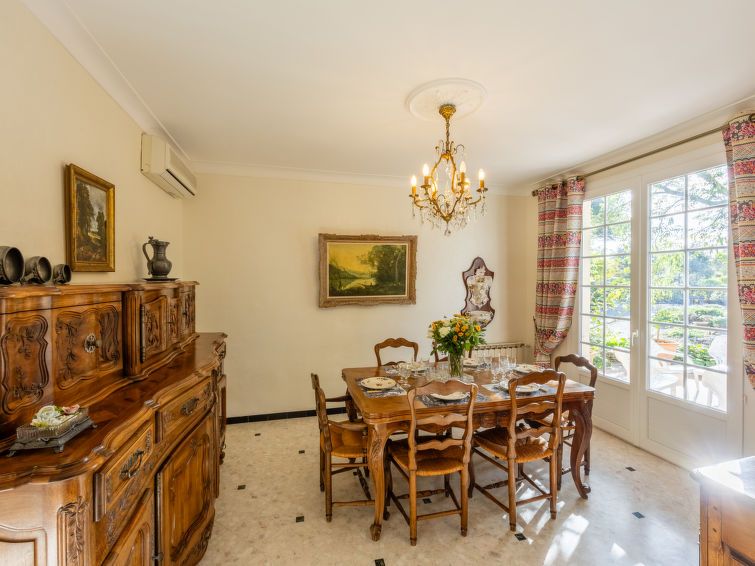 "Le Clos Saint Emilie (Tennis & piscine)", 6-room house 140 m2. Very beautiful furnishings: large living room with TV (flat screen), air conditioning. Dining room with dining table and air conditioning. Exit to the terrace. 1 room with 1 french bed (1 x 160 cm, length 200 cm), air conditioning.