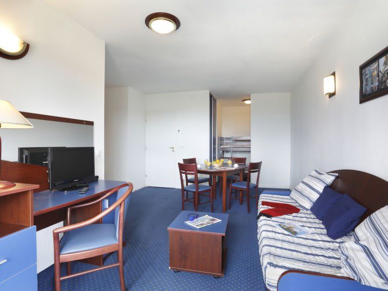 2 rooms with 1 double bedroom and 1 alcove with 2 bunk beds. Very good general condition, seen on the side of the residence, under the roofs. Friendly, smiling and helpful staff. There is a lack of dishes in the inventory, too bad there is no shelf above the refrigerator to increase the storage of the tiny kitchen area. Very quiet residence, The jacuzzi is closed due to water restrictions. Free parking.