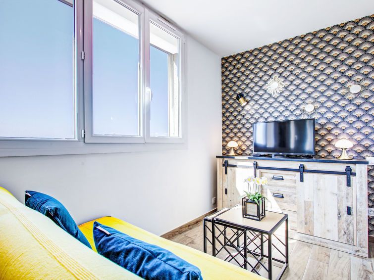 "Ajoupa", 2-room apartment 25 m2 on 5th floor, west facing position. Fully renovated: living/sleeping room with 1 sofabed (120 cm, length 190 cm), dining table and TV. 1 small room with 1 double bed (1 x 130 cm, length 190 cm). Kitchen (dishwasher, 2 ceramic glass hob hotplates, toaster, kettle, electric coffee machine).