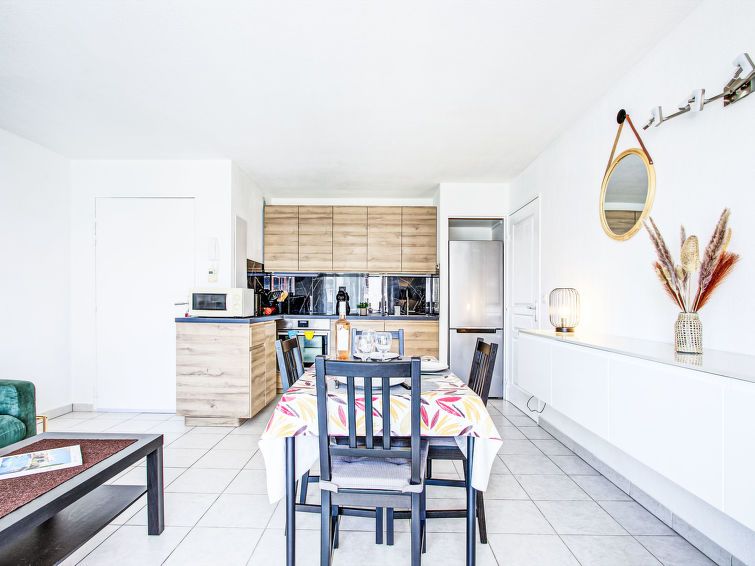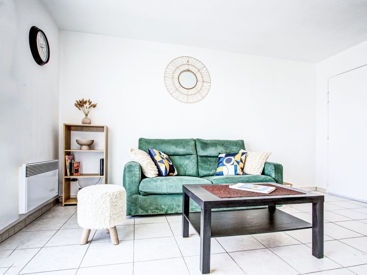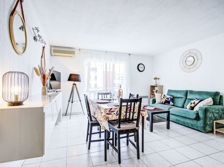 3-room apartment 40 m2 on 1st floor, south facing position. Comfortable furnishings: living/dining room with dining table and TV (flat screen), air conditioning. Exit to the balcony. 1 room with 1 french bed (1 x 140 cm, length 190 cm). 1 small room with 2 beds (90 cm, length 190 cm).