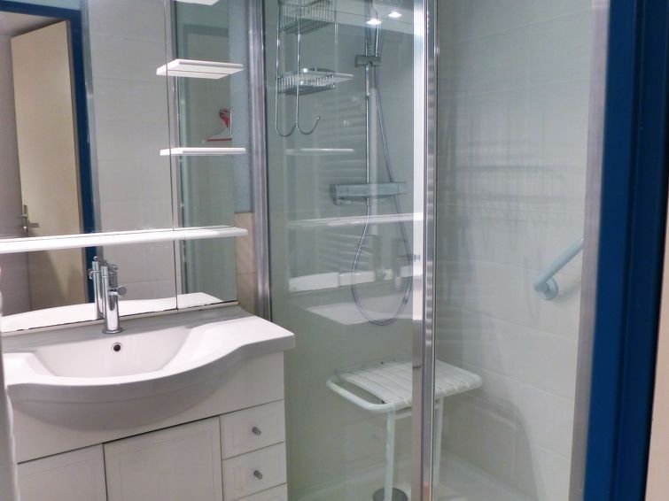 3-room apartment 46 m2 on 4th floor. Living/dining room 25 m2 with 1 double sofabed (140 cm, length 190 cm), TV (flat screen), DVD, fan and electric shutters. Exit to the terrace. 1 room with 1 french bed (140 cm, length 190 cm). 1 room with 1 bed (90 cm, length 190 cm). Kitchenette (oven, dishwasher, 4 induction hot plates, kettle, microwave, freezer, electric coffee machine).