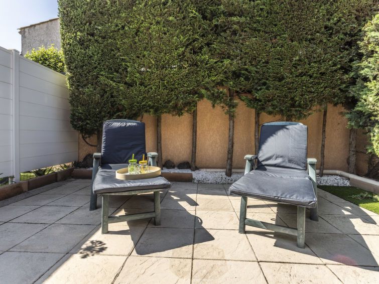 3-room terraced house 55 m2 on 2 levels. Living/dining room with panoramic window with TV (flat screen), air conditioning. Exit to the terrace. 1 room with 1 french bed (140 cm, length 190 cm), air conditioning. Kitchenette (2 hot plates, mini-oven, oven, dishwasher, 4 induction hot plates, microwave, freezer, grill, electric coffee machine, combination microwave).