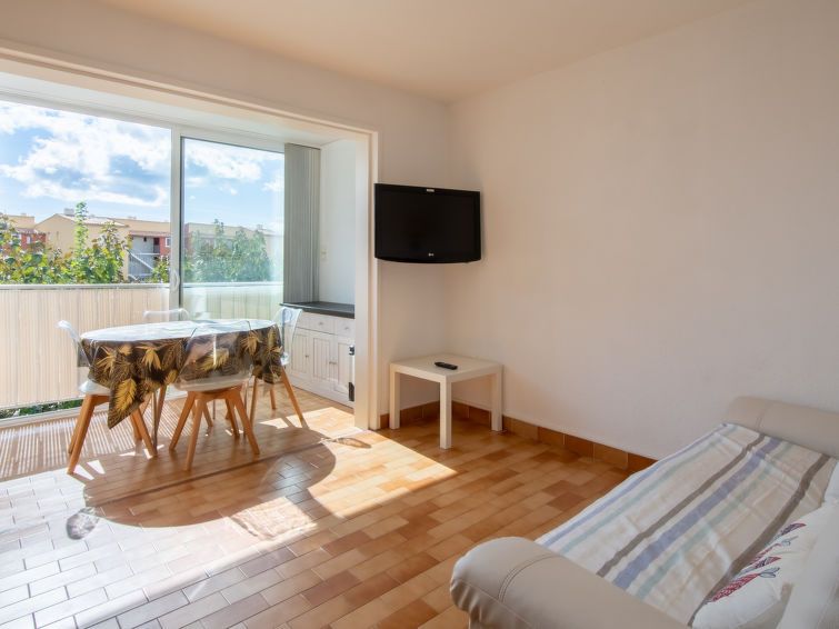 "Les Maldives E", 3-room apartment 25 m2 on 1st floor. Object suitable for 5 adults. 1 room with 1 double bed. 1 room with 1 bed. Living room with 1 sofabed and 1 pull-out bed. Open kitchen (4 hot plates, oven, dishwasher, kettle, microwave, freezer, electric coffee machine). Shower/WC.