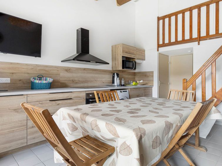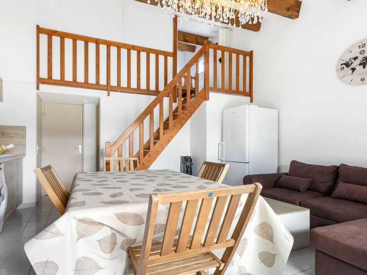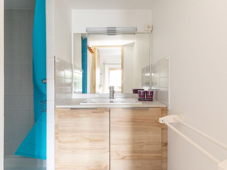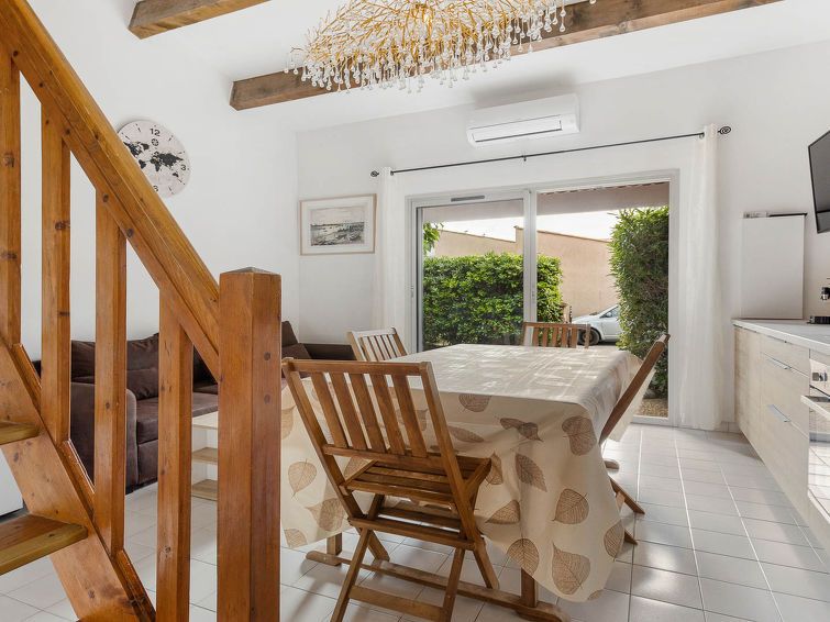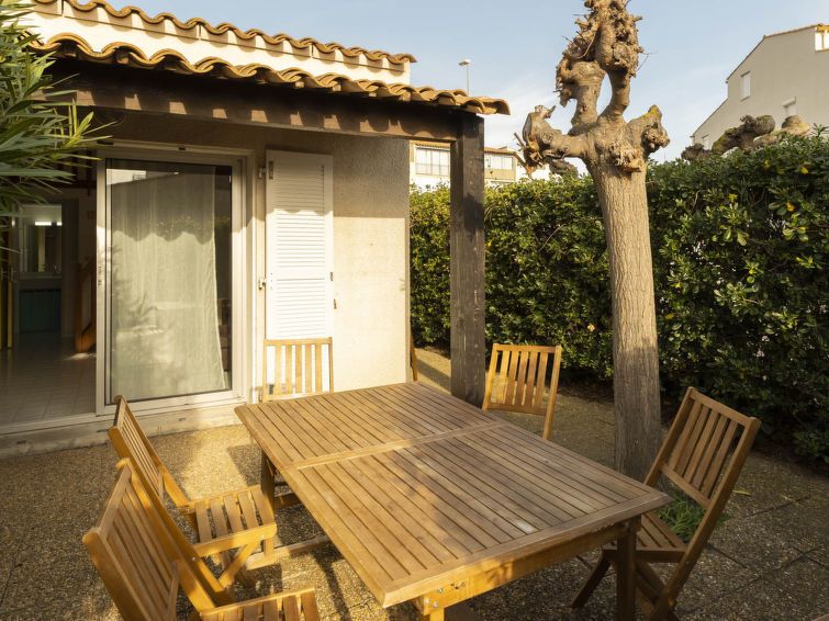 "Les Ondines 2", 2-room house 40 m2, on the ground floor. Object suitable for 6 adults. Living room with 2 beds, 1 sofabed, 1 pull-out bed and TV. 1 room with 1 double bed. Kitchen (4 induction hot plates, kettle, microwave, freezer, electric coffee machine). Shower/WC. Terrace. Barbecue.
