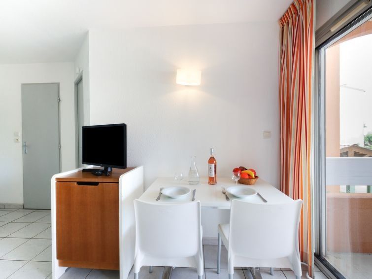 2-room apartment 23 m2 on 1st floor. Living/dining room with 1 pull-out bed (2 pers. 2 x 90 cm, length 190 cm), TV (flat screen). 1 room with 2 beds (90 cm, length 190 cm). Kitchenette (2 ceramic glass hob hotplates, microwave). Shower/WC. Electric heating. Terrace 8 m2, north facing position and, east facing position.