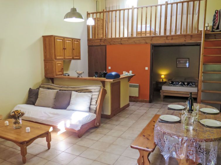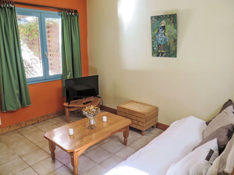 "Le Cazelle", 2-room terraced house 55 m2. Simple and beautiful furnishings: living/dining room with dining table and TV (flat screen). Exit to the terrace. 1 room with 1 french bed (140 cm, length 190 cm). Open kitchen (mini-oven, 4 gas rings, toaster, kettle, microwave, freezer, electric coffee machine).