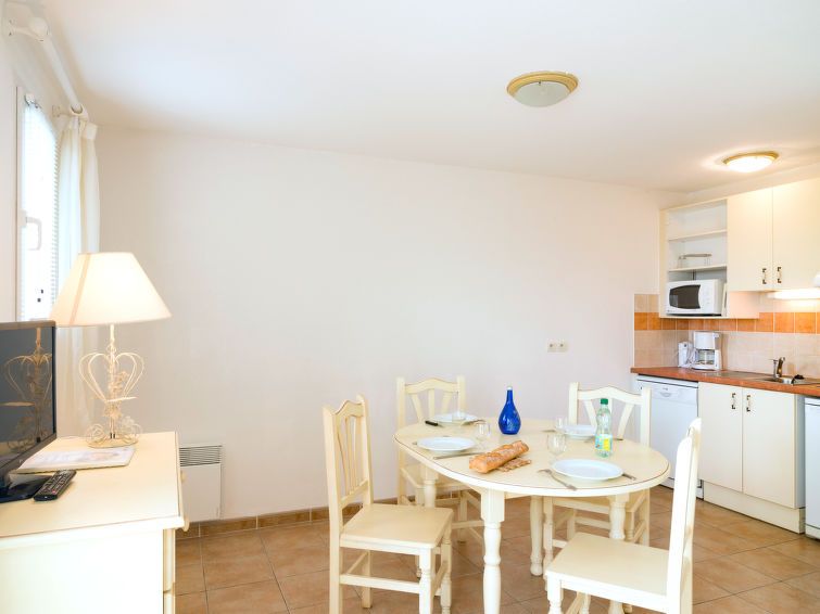 "Les Hauts du Lac", 2-room terraced house 52 m2. Practical furnishings: living/sleeping room with 1 sofabed, 1 pull-out bed, dining table and TV. Exit to the terrace. 1 room with 1 french beds. Small, open kitchen (dishwasher, 4 ceramic glass hob hotplates, kettle, microwave, electric coffee machine).
