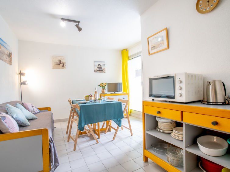 2-room apartment 30 m2, on the upper ground floor. Partly renovated: living/dining room with 1 sofabed (80 cm), TV (flat screen). 1 small room 5 m2 with 1 french bed (140 cm). Alcove with 1 x 2 bunk beds (80 cm). Kitchenette (mini-oven, 4 induction hot plates, microwave, freezer).