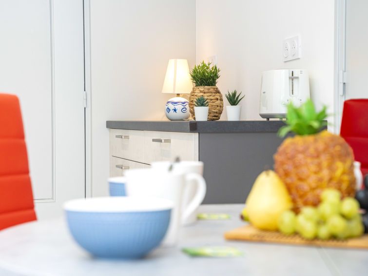 "Le Club", 2-room apartment 30 m2 on 2nd floor, south-west facing position. Renovated in 2024, comfortable furnishings: living/dining room with (140 cm, length 190 cm), TV (flat screen), electric heating and air conditioning. Exit to the loggia. 1 small room with 1 x 2 bunk beds (90 cm, length 200 cm).