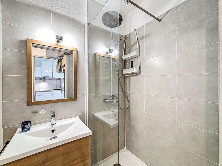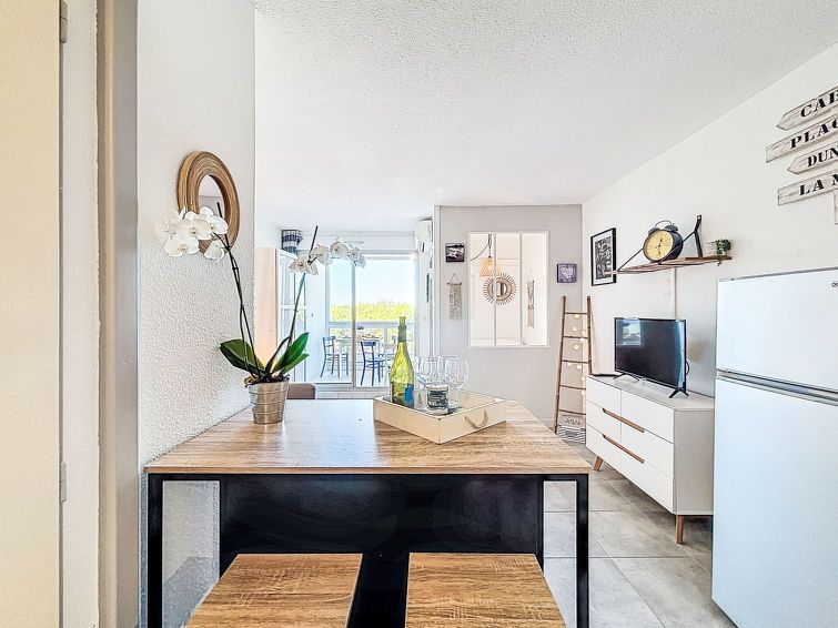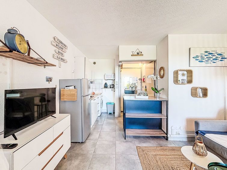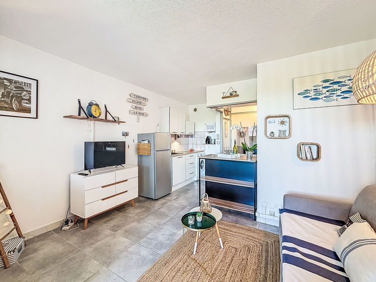 2-room apartment 24 m2 on 2nd floor. Beautiful furnishings: living/dining room with 1 double sofabed (160 cm, length 190 cm), TV (flat screen), electric heating, air conditioning and electric shutters. 1 small room 6 m2, north facing position, without window with 1 french bed (140 cm, length 190 cm).