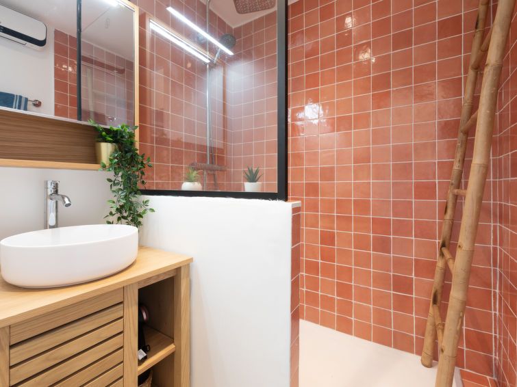 2-room apartment 34 m2 on 1st floor. Living/dining room. Exit to the terrace. 1 room, without window with 1 french bed (1 x 140 cm, length 190 cm). Kitchenette (oven, 4 induction hot plates, toaster, kettle, microwave, electric coffee machine, Capsules for coffee machine (Nespresso) extra).