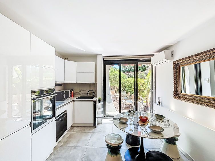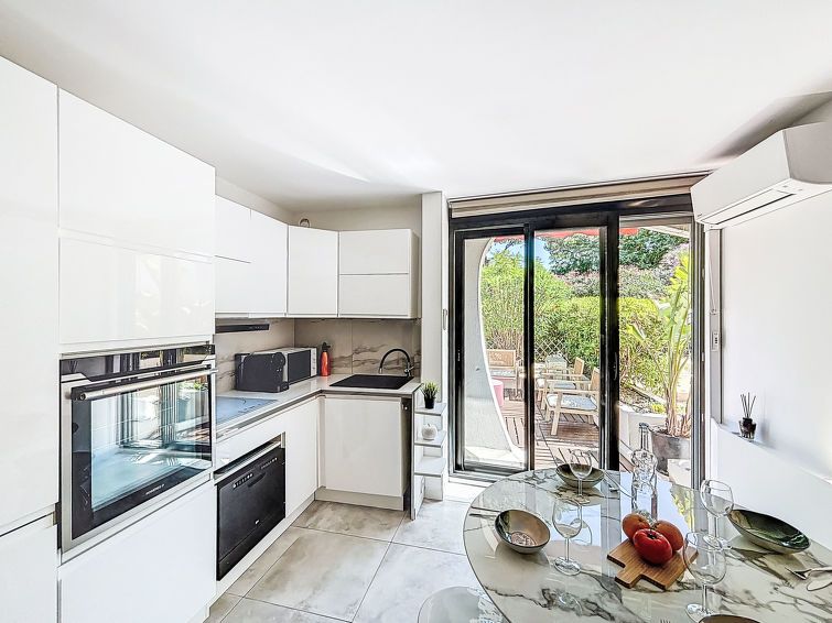 2-room apartment 27 m2, on the ground floor, south facing position. Beautiful furnishings: living/dining room with 1 double sofabed (140 cm, length 190 cm), TV (flat screen), air conditioning. Exit to the terrace. 1 small room with 1 french bed (140 cm, length 200 cm). Kitchenette (oven, dishwasher, 3 induction hot plates, toaster, kettle, microwave, freezer, electric coffee machine, Capsules for coffee machine (NESPRESSO) extra).