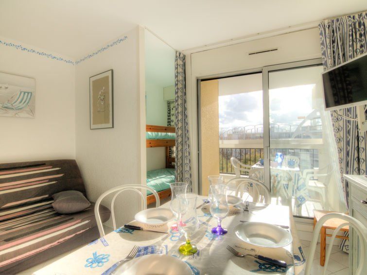 The studii is very functional and well thought out. Especially the sleeping area with the bunk bed near the windows. 3 minutes walk from the sea. Super good, practical and large balcony